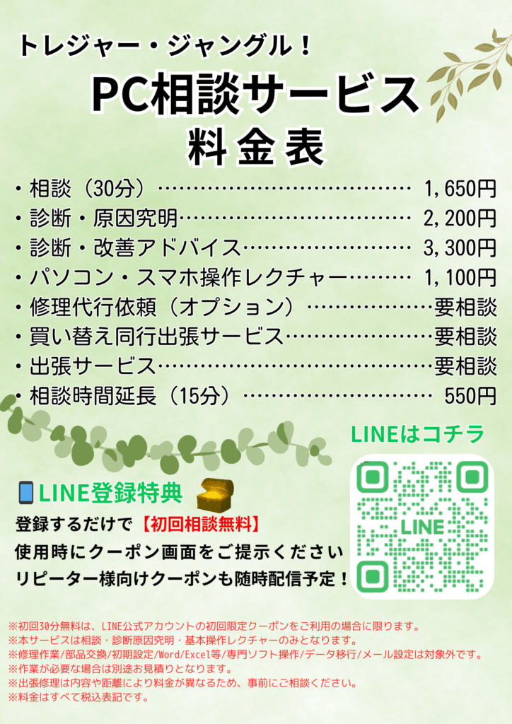 🖥 パソコンの「相談だけ」でも、お力になれたらと思い始めました。